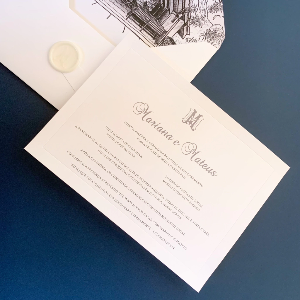 - ACABAMENTO: Fechamento com lacre de cera na cor de preferência. Borda Almofada opcional (pode ser retirada).