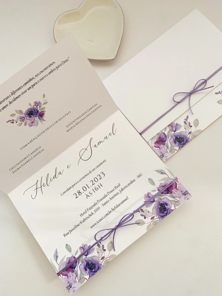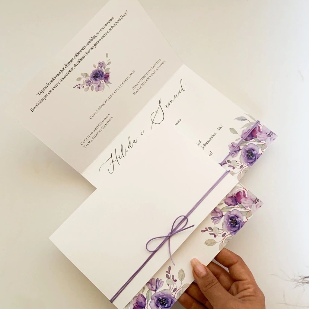 - ACABAMENTO: De acordo com o fechamento escolhido: lacre de cera ou fio encerado. Acompanha tag com nome do convidado.