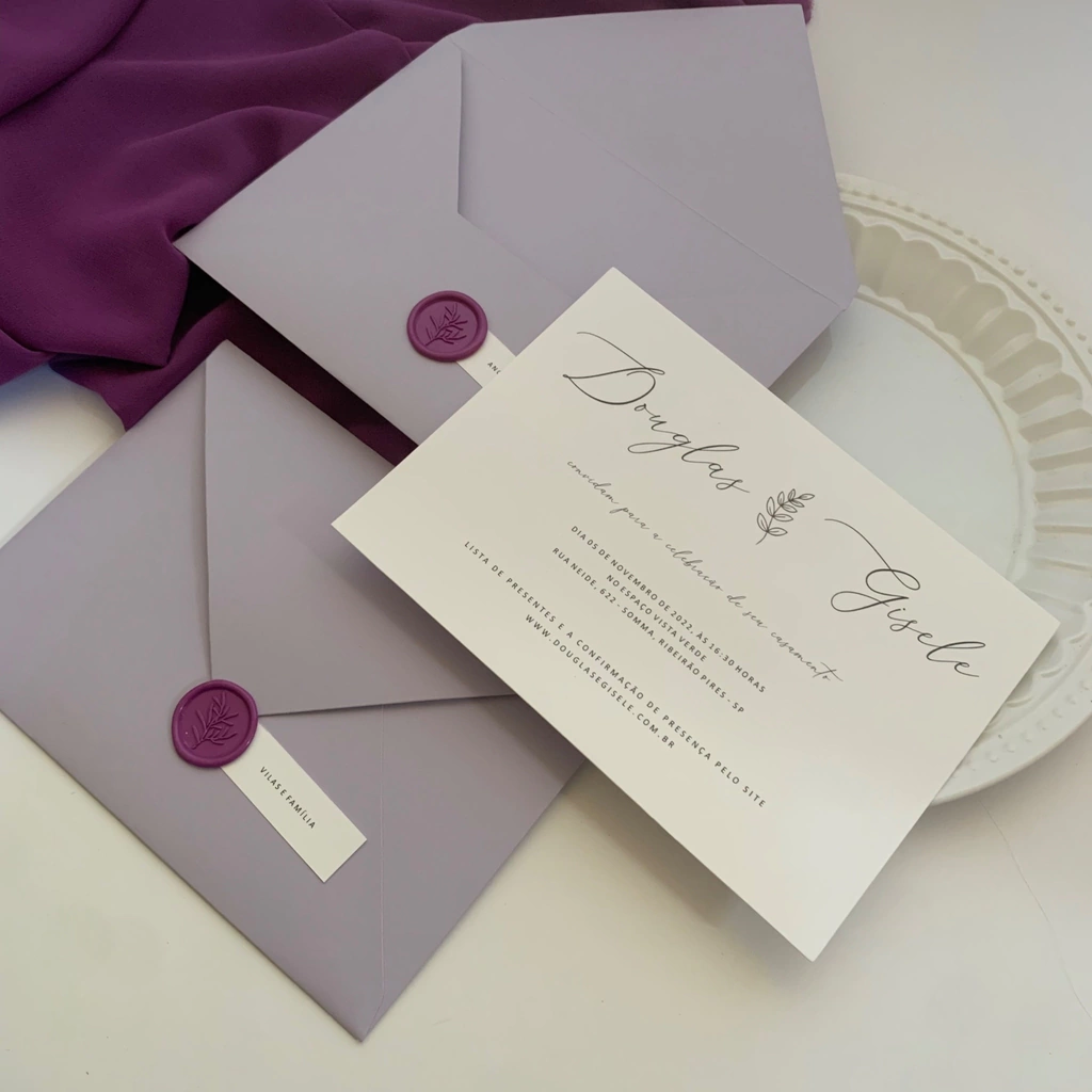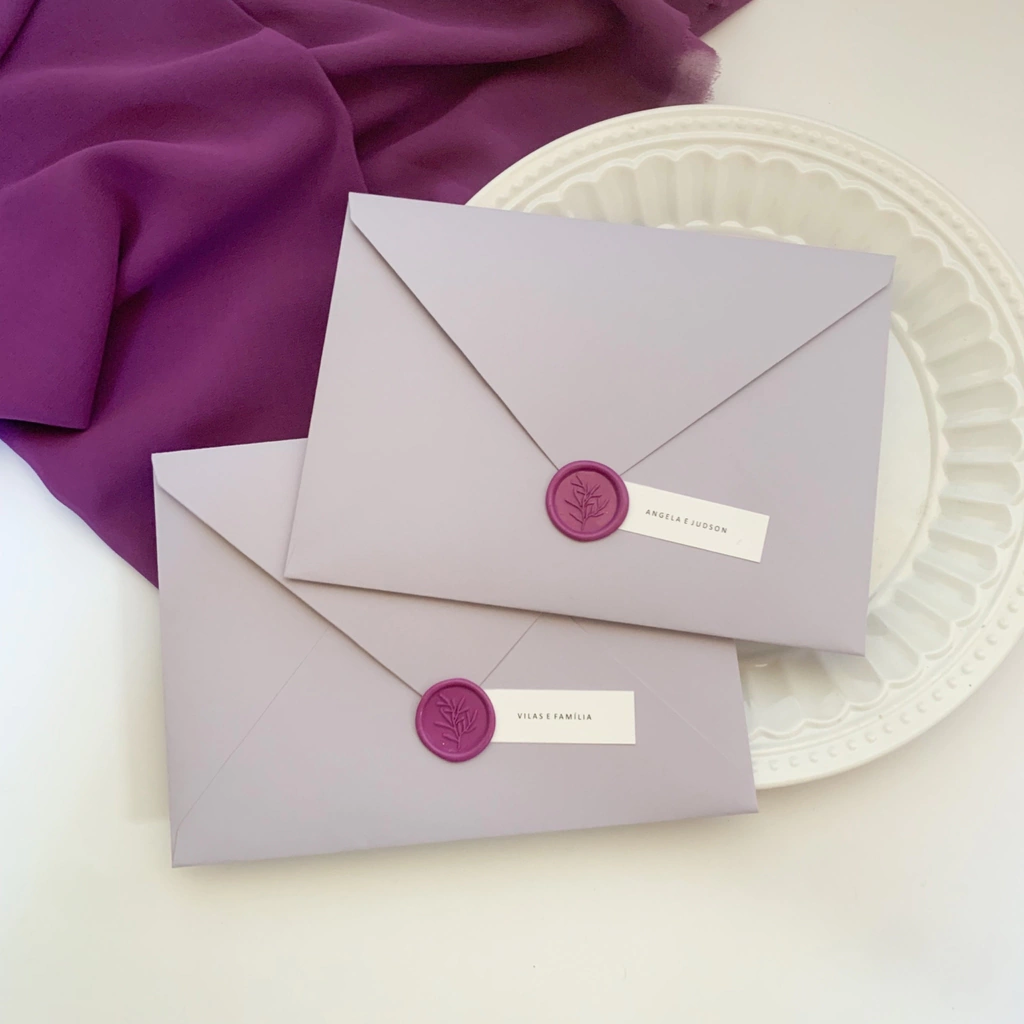 - ACABAMENTO: De acordo com o fechamento escolhido: lacre de cera ou fio encerado. Acompanha tag com nome do convidado.