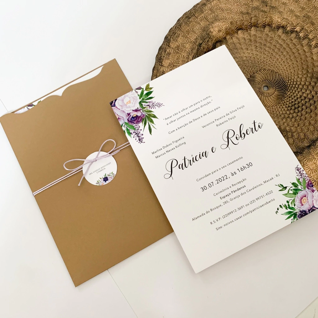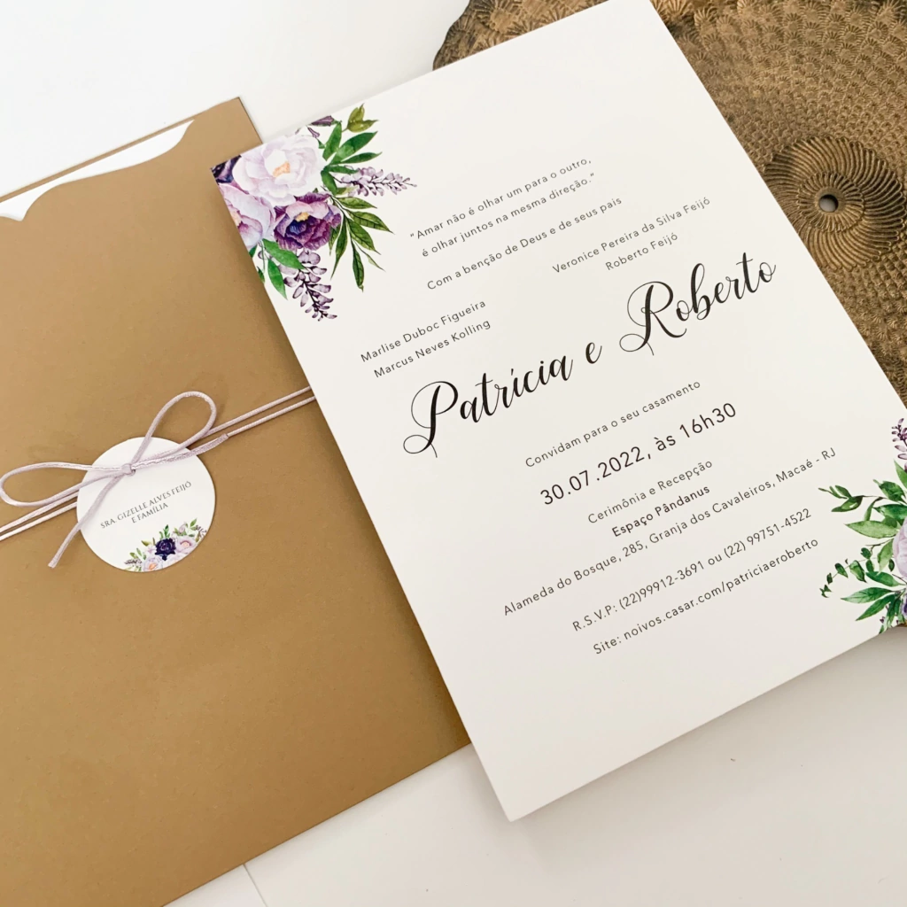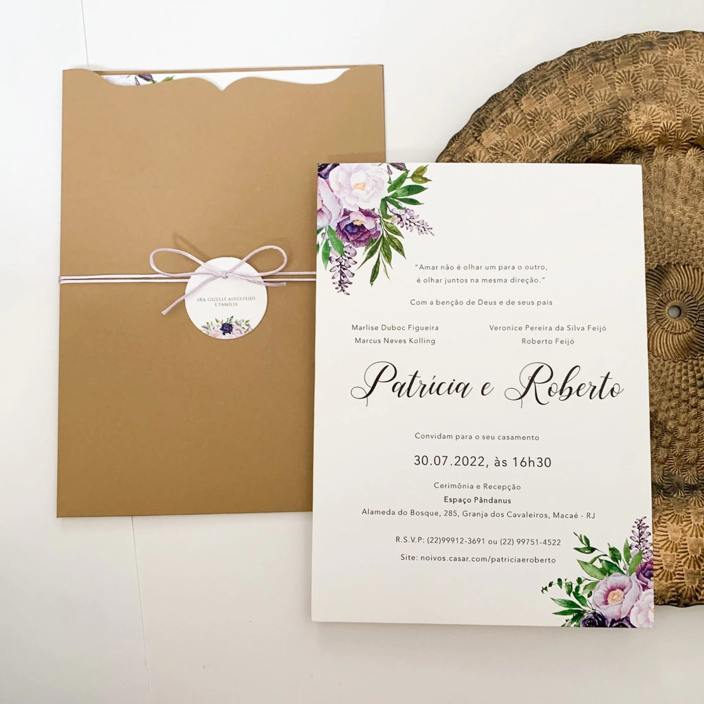 - ACABAMENTO: De acordo com o fechamento escolhido: lacre de cera ou fio encerado. Acompanha tag com nome do convidado.