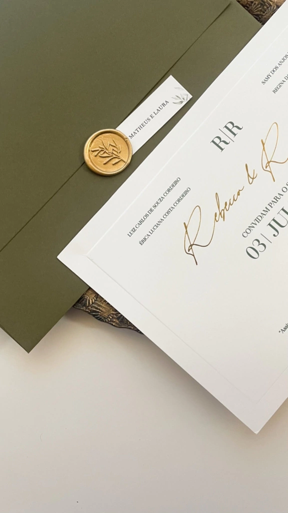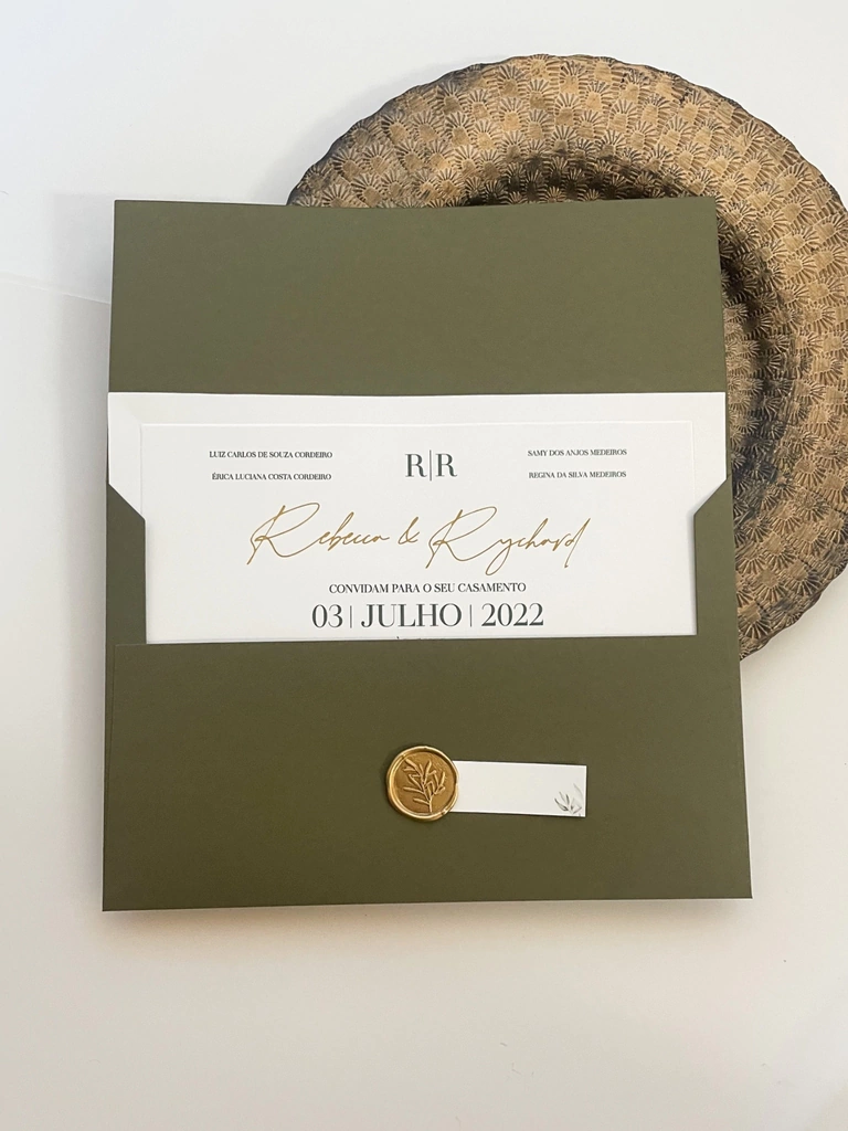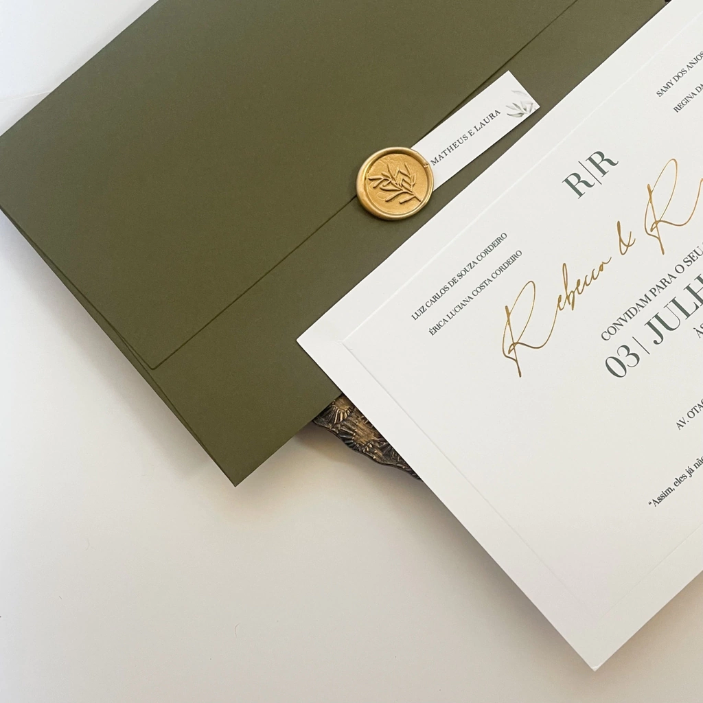 - ACABAMENTO: De acordo com o fechamento escolhido: lacre de cera ou fio encerado. Acompanha tag com nome do convidado.